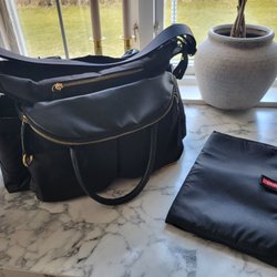 Skötväska, aldrig använd, kommer med tillhörande liten kylväska och skötunderlägg.