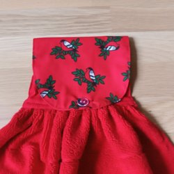 Mått längd ca 60 cm bredd vid midjebanden ca 43 cm. Knytband vid nacken 2 st ca 40 cm , midjan 2 st ca 40 cm.