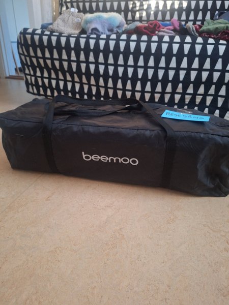 Beemoo resesäng i svart färg. Enkel att fälla ihop och transportera i den medföljande väskan.