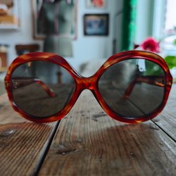 Ett par vintage solglasögon med en unik design. Perfekt för den som söker en retrostil.