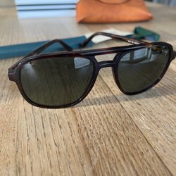 Kommer med ett glasögonfodral som tyvärr ej är orginal eller matchar utan är för att skydda under transporten.