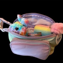 Ett mörkrosa fjärilsformat hänge att sätta på ex väskan. Hänget ser ut som en kristall men är av plast.