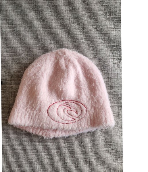 En söt, rosa mössa med en broderad detalj. Perfekt för att hålla värmen under kyliga dagar.