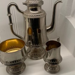 Örhängen, brosch, armband och ett pärlhalsband.
