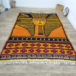 Smukt gulvtæppe med et iøjnefaldende mønster i rød, brun og blå nuancer. Perfekt til at tilføje varme og personlighed til ethvert rum. Funger både i køkken og stuen. Det er flot velholdt. Ingen huller eller pletter, dog mikroskopisk lidt stearin se sidste billed.