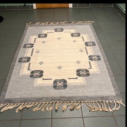 Rullad matta med blommönster. Perfekt för att ge ditt hem en touch av stil. Grå färg med tulpaner på dessutom. :) Storlek. 80×150 :)