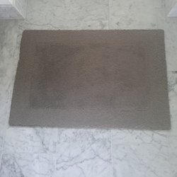 En dörrmatta i grå och svart färg. Mattan har en baksida i gummi.
