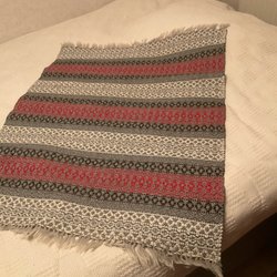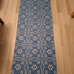 Storlek 2.96 m lång utan frans, 0,64 m bred. liksidig.