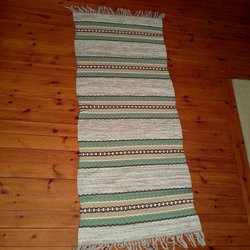 Plastmatta, har fransar i båda ändar men i den ena änden är fransen ”kortare”