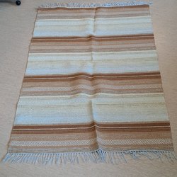 En randig plastmatta i olika färger. Mattan är ej tvättad. ca. 70 x 190 cm.