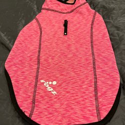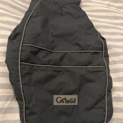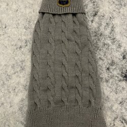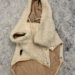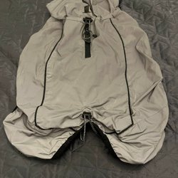 Lätt använd grå hundjacka med fuskpälsluva.