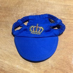 En rosa kamouflagemönstrad keps för hundar, storlek M. Kepsen har elastiska band för att hålla den på plats.