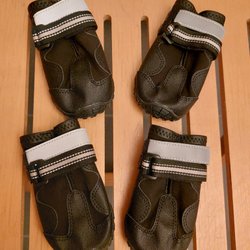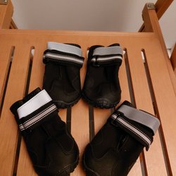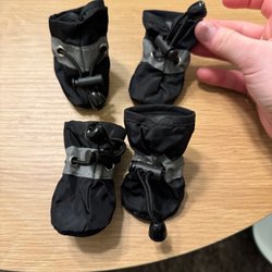 använda 2 gånger blåa vattentäta vinter hundskor storlek S säljes