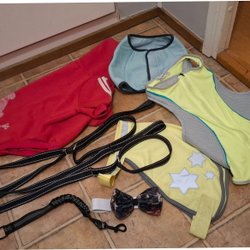 Diverse hundtillbehör säljes. Inkluderar bland annat koppel, hundhalsband, hundsele, bollar, bajspåsehållare, vattenflaska och godisväska.