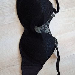 Elegant sort bh med blonde detaljer. Bh'en har justerbare stropper og lukning bagpå.