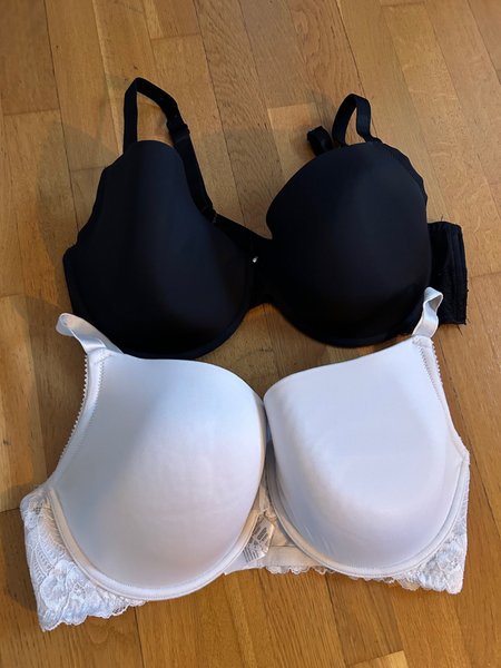 Svart och vit BH med bygel och justerbara axelband. Använt skick. 90F