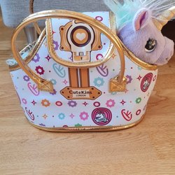 Ett set med två söta handväskor för barn. En väska har motiv av Isabella och hennes vänner, och den andra har Frost-tema med Elsa och en häst.