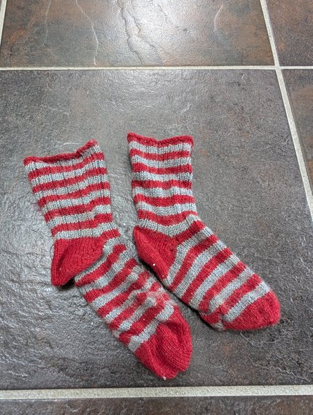 Grå, röda strumpor stickade sockar