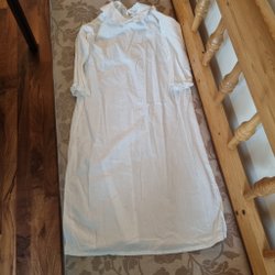 Vit långärmad Lucialinne med krage och spetsdetaljer vid ärmslut. Stl 120/130.