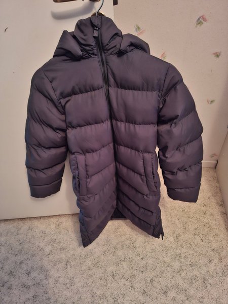Vadderad jacka med huva och dragkedja framtill. Jackan har två fickor fram.