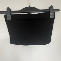 Ribbstickad topp med rund halsringning och korta ärmar. Liten fläck framtill. Märkt som S men liten i storlek
