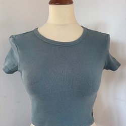 Mörkblå topp från LUSA med smala axelband och guldfärgade dekorativa detaljer längs kanterna. Toppen har en dragkedja i sidan för enkel på- och avtagning. Ingen storlek står på, men passar som en M.