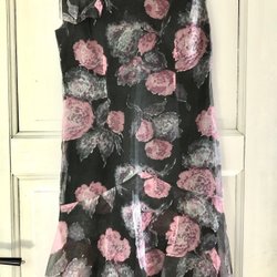 Vintage spetstop i tunn genomskinlig svart nylon - framstycket i dubbelt tyg och det yttersta lagret spetsmönstrat - bakstycket av enkelt tyg - effektfull detalj är de två små slitsarna nedtill på framstycket