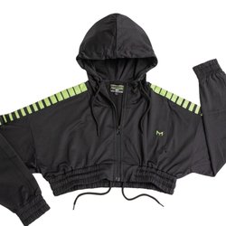 Svart långärmad crop top med rund halsringning. Den har en åtsittande passform och är perfekt för träning eller vardagsbruk. Detaljer med hål på ärmen.