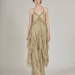 Mouwloze top met V-hals en spaghettibandjes. De top is versierd met pailletten in een geometrisch patroon in de kleuren groen, blauw en goud.