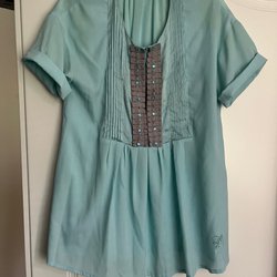 MQ Set, spets topp, Linne, stl M, blå, boho chic, volang
