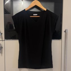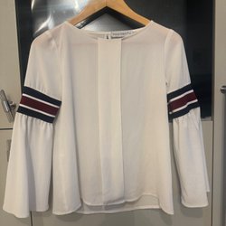 Grå polotröja med lite kortare midja som därför passar bra till byxor med hög midja. Storleken är S men skulle även passa xs