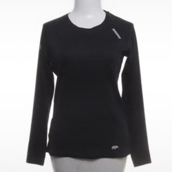Svart långärmad tröja med hög hals. Tröjan är kort i modellen.