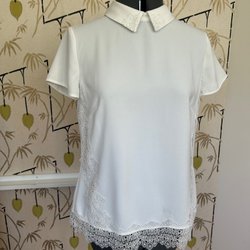 Supervacker topp från exklusiva Tibi New York, 100 % siden. Fantastiska detaljer, boxarrygg och smickrande skärning. Amerikansk storlek 8, motsvarar 40 men lite liten. Dessvärre för liten för mig, aldrig använd. Absolut nyskick.