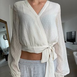 Svart långärmad topp med fyrkantig halsringning och en liten vit rosett framtill. Toppen har en smickrande passform.