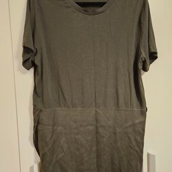 Ärmlös topp. Den har ett dekorativt spetsliknande parti över bröstet och en liten öppning med knapp i nacken.
