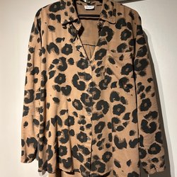 Ljusblå topp med en dekorativ spetsdetalj baktill. Toppen har korta ärmar och en något längre baksida.
