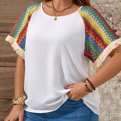 Vinröd ärmlös topp med V-ringning och ett blommigt mönster i svart och vitt. Mönstret finns runt halsen och längst ner på toppen.