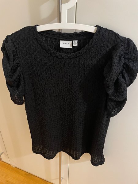 Svart blus med puffärmar och rund halsringning. Stl S, mycket bra skick, använd en gång.
