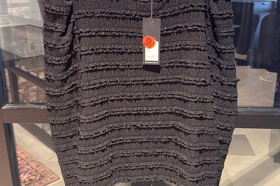 Tröja med långa ärmar och rund halsringning. Tröjan har en texturerad yta med horisontella volanger över hela plagget, vilket ger en dynamisk och detaljerad look. Passar bra för en avslappnad men stilfull vardagslook.