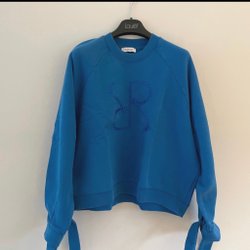 Stickad mörkt marinblå kofta med 5 st metallknappar i guld och slitsar vid ärmslut. Slitsarna uppvikta för visning. Knappt använd.