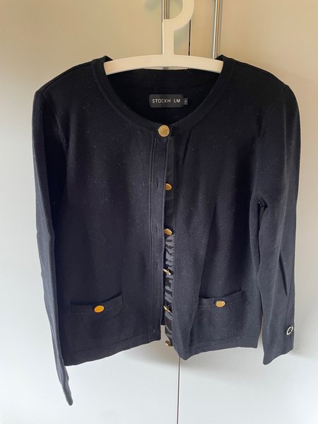 Svart kofta från STOCKH LM med guldknappar och dekorativa detaljer. Koftan har två fickor fram. Stl S, bra skick.