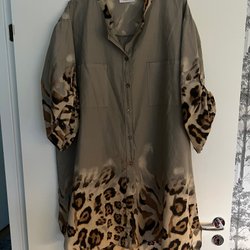 Färgstark tröja med ett unikt mönster av zebraränder, leopardfläckar, solar och stjärnor. Den har en v-ringning och korta ärmar.
