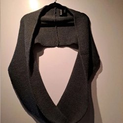 Ärmlös topp med ett ormskinnsmönster i grå och vita nyanser. Den har en rund halsringning och racerback-design. Storlek S men stor I storleken.