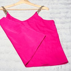 Fuchsiafärgad topp med korta ärmar och en utsvängd nederkant. Toppen har en dragkedja baktill.