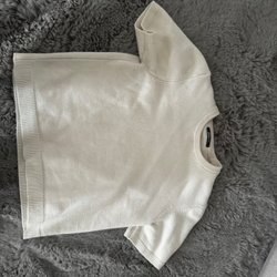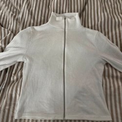 Mörkblå långärmad topp med fyrkantig halsringning och ribbad textur. Toppen har en figurnära passform. Storlek M från Gina Tricot