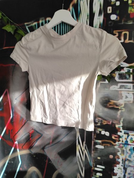 En kortärmad topp med rund halsringning. Toppen har en figurnära passform och korta ärmar.