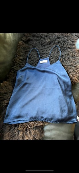 Blå topp med smala axelband. Toppen har en enkel och stilren design.
