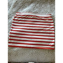 Röd, ärmlös topp med volangdetaljer runt halsringningen. Strl L. Använd endast ett par gånger.