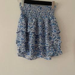 En off shoulder-topp med långa ärmar. Toppen har en resårkant upptill och nedtill, samt volangdetaljer vid ärmslut och nederkant. En knytbanddetalj finns framtill i halsringningen. Toppen är från nakd men lapp finns ej på