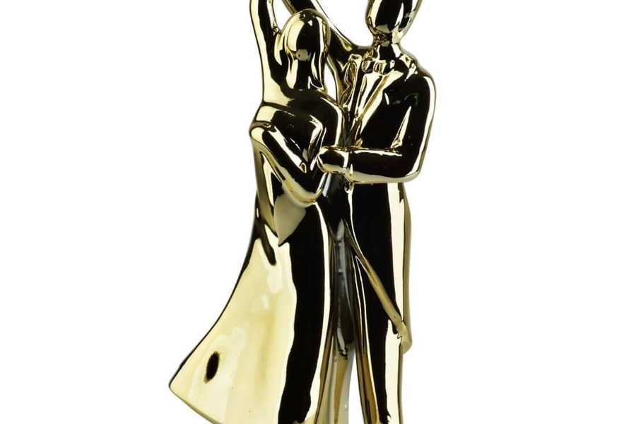 Dekorativ bröllopsfigur i guldfärg. Perfekt som dekoration.